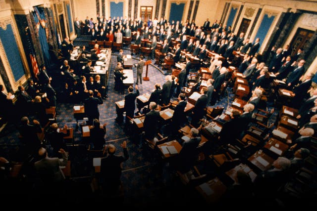 When it’s time to deliver their verdict, each senator stands at his or her desk and simply states “guilty” or “not guilty” to each article of impeachment. If the prosecution fails to get two-thirds of the Senate (67 senators) to vote guilty on any of the charges, the president is acquitted and keeps his or her job.